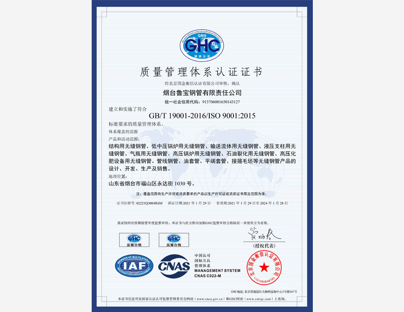 公司管理體系取得API Q1、ISO 9001、ISO 14001、ISO 45001和ISO 50001標(biāo)準(zhǔn)認(rèn)證證書,實(shí)驗(yàn)室取得ISO/IEC 17025認(rèn)可證書。